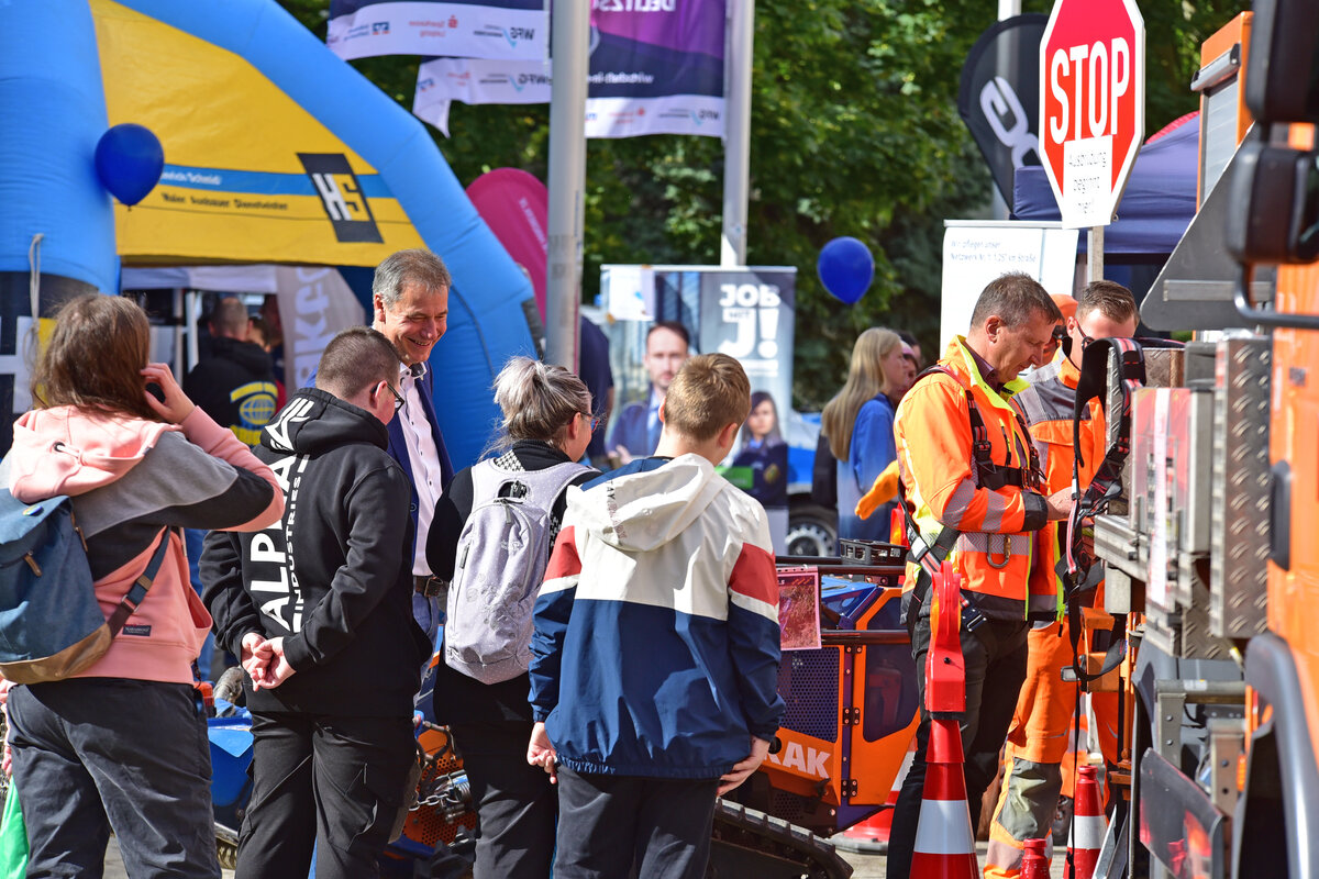 Besonders hervorzuheben war das Papermobil der Papierindustrie, das den Besuchern die Papierherstellung näherbrachte, sowie der M&E Truck der Metall- und Elektroindustrie, der praxisnahe Einblicke in diese Berufe bot. Darüber hinaus präsentierten Unternehmen aus den Bereichen grüne Berufe, Bau und Straßenbauamt im Außenbereich ihre Angebote und Möglichkeiten. Die Justiz stellte ebenfalls innovative Technik zum Anfassen vor.