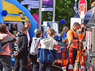 Besonders hervorzuheben war das Papermobil der Papierindustrie, das den Besuchern die Papierherstellung näherbrachte, sowie der M&E Truck der Metall- und Elektroindustrie, der praxisnahe Einblicke in diese Berufe bot. Darüber hinaus präsentierten Unternehmen aus den Bereichen grüne Berufe, Bau und Straßenbauamt im Außenbereich ihre Angebote und Möglichkeiten. Die Justiz stellte ebenfalls innovative Technik zum Anfassen vor.